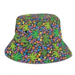 Rainbow Colors Cannabis Weed Leaf Pattern Bucket Hat $29.99420 Ganja Leaf Colorful Mosaic Artwork Cool Bucket Hat
