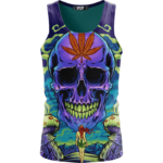 Amazing Skull Vector Art Trippy Weed Green Violet Dope Tank Top